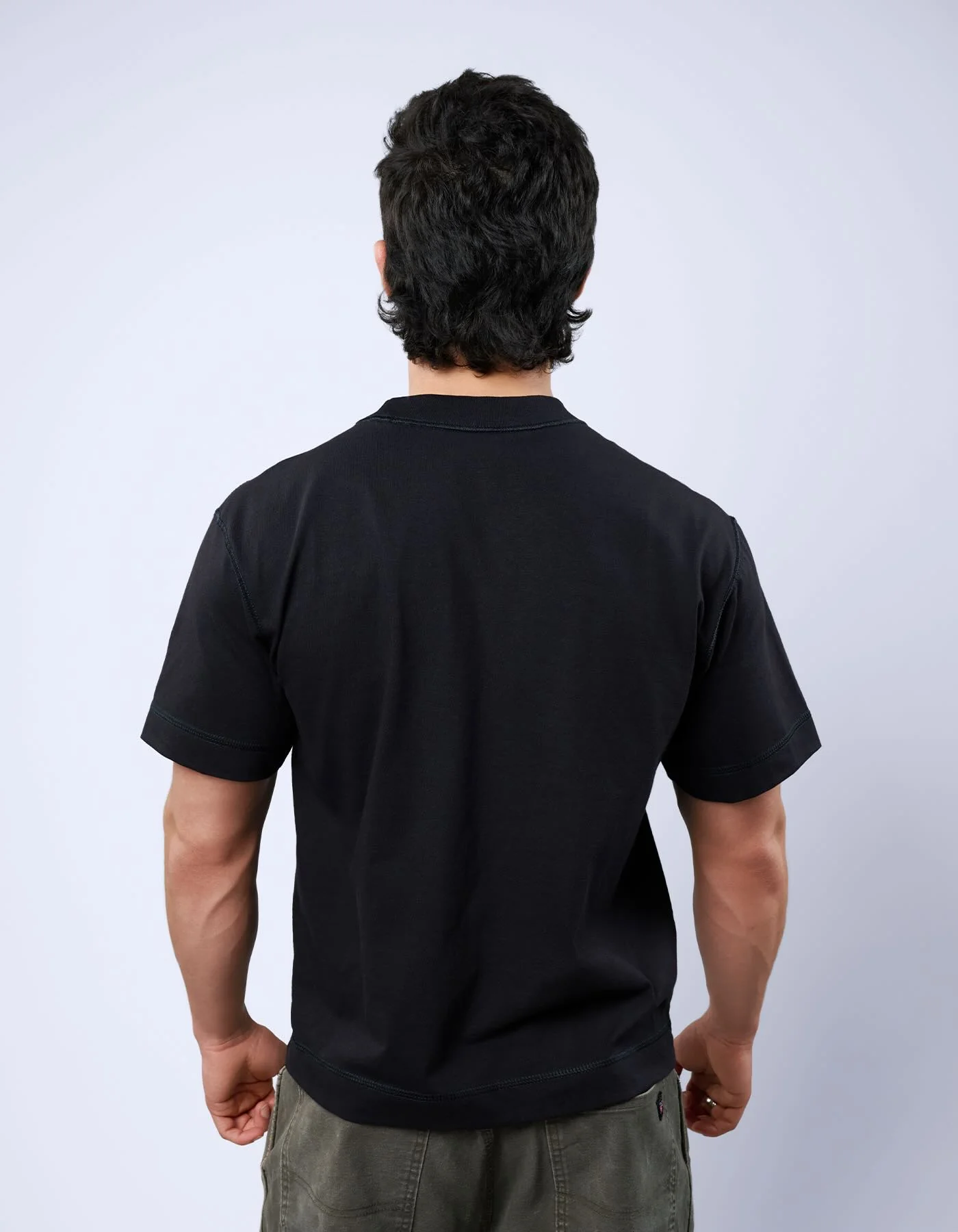 - Standard fit tee, slightly boxy/cropped; take your normal size or size up for an oversized look
