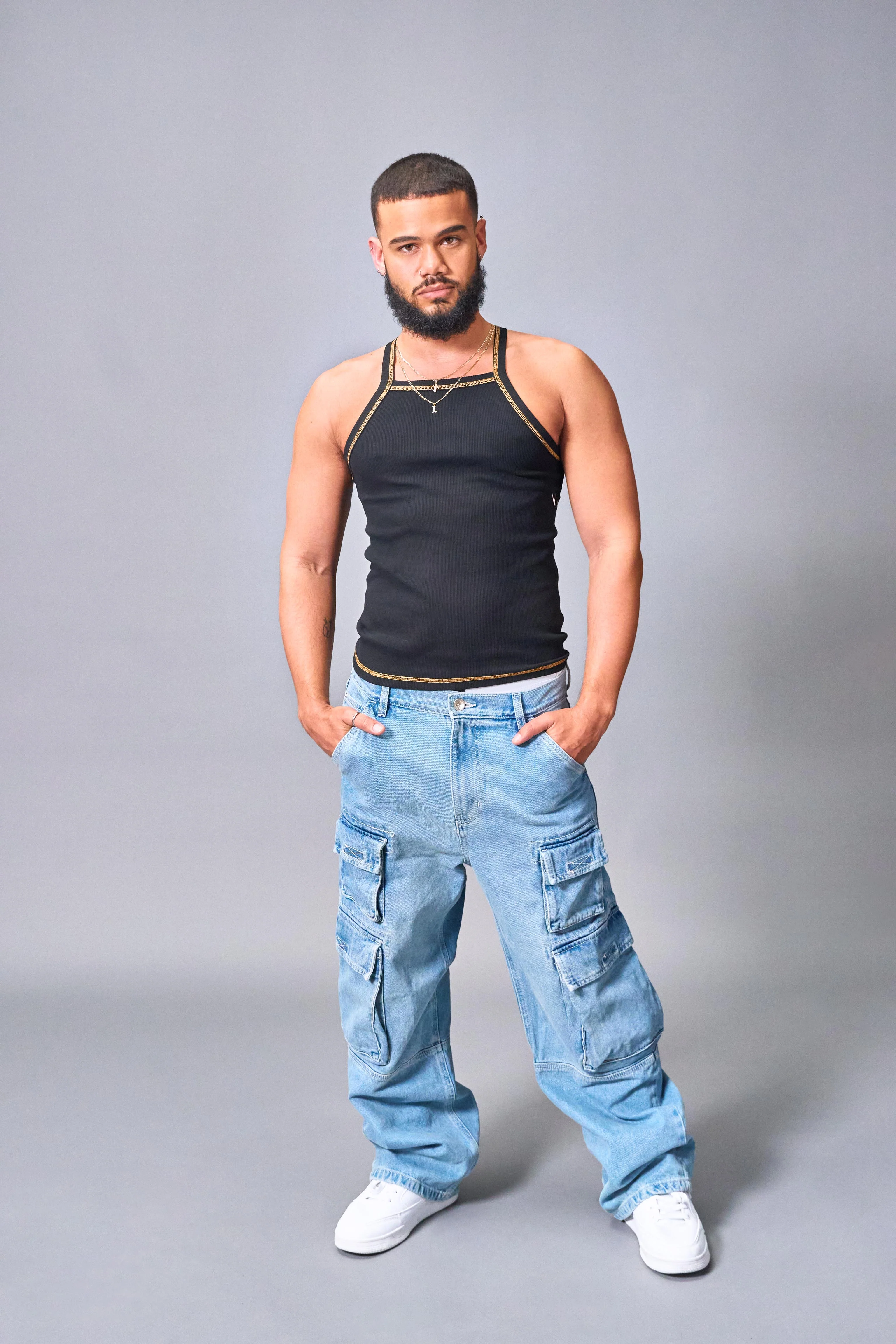 The FANG x Sniffies Essential Ribbed Tank is a modern take on the classic ribbed tank with a square neckline that nods to activewear silhouettes like the singlet. Sewn with gold exterior thread and both logos embroidered at the armhole, this tank was cut for a close fit to become an instant Cruising classic. If you're between sizes, we recommend sizing up.