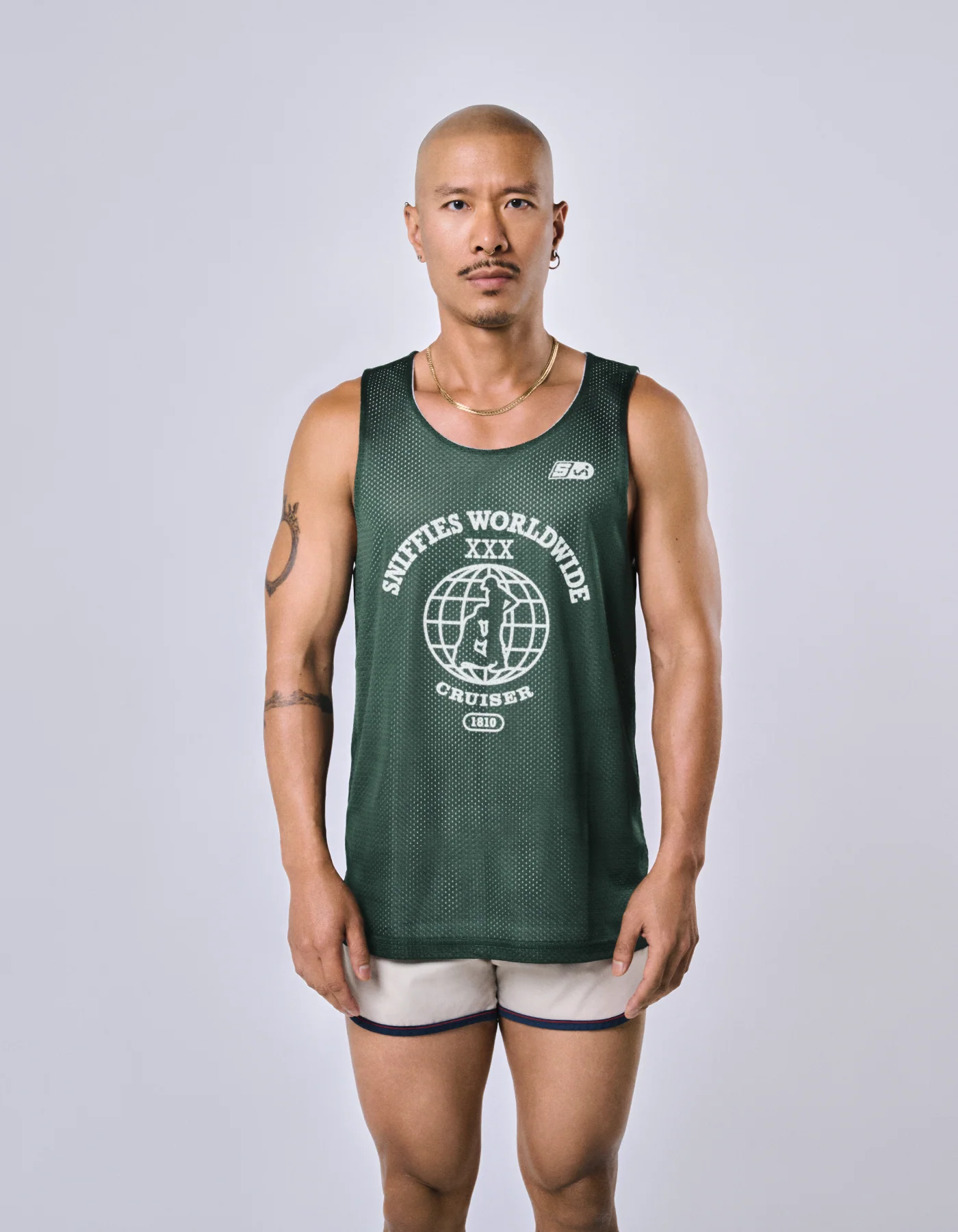 - Sniffies Worldwide Cruiser logo stamped front and back, both sides